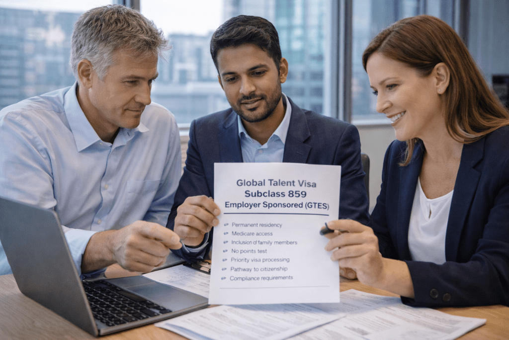 The Global Talent Visa (Subclass 859) allows highly skilled professionals to live and work in Australia permanently under the Global Talent Employer Sponsored (GTES) program.